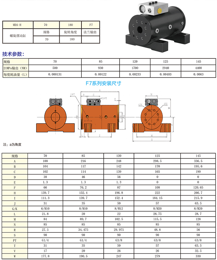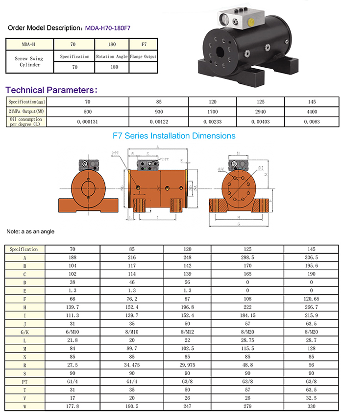 F7系列螺旋擺動油缸為底腳式安裝,帶防暴管平衡閥,結構緊湊,外觀合適。安裝方便,普遍應用于各種工程機械及翻轉機構,與進品F7系列1:1互換使用。